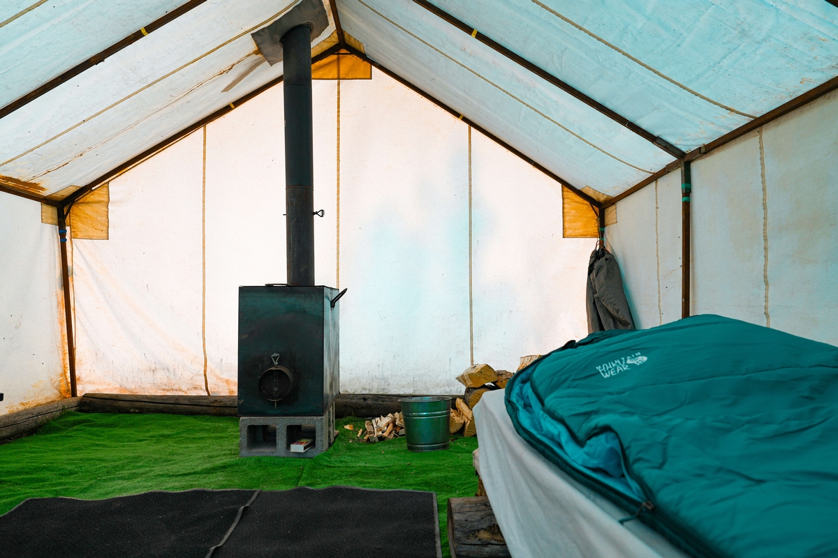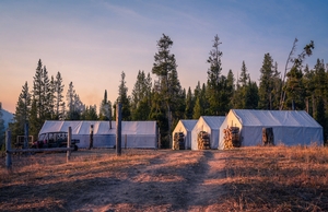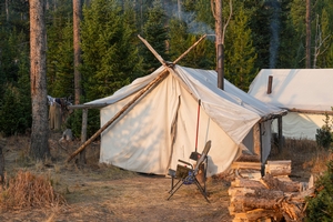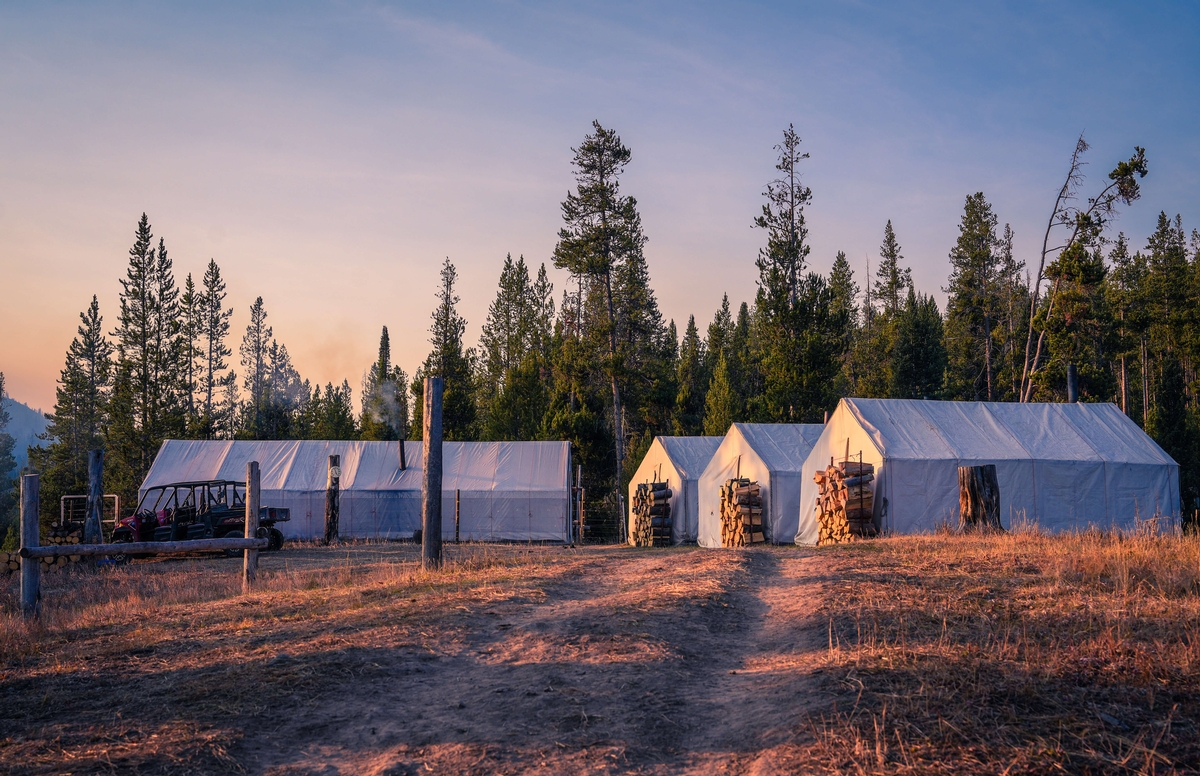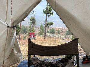Welcome to our Mountain Ivory Adventures camp, where we offer a premium outdoor experience with all the comforts you need. Our camp features new wall tents, each outfitted with cots, mattresses, and custom wood stoves to keep you warm. You'll find a fully furnished cook tent complete with a comfortable dining table and camp chairs for your meals.